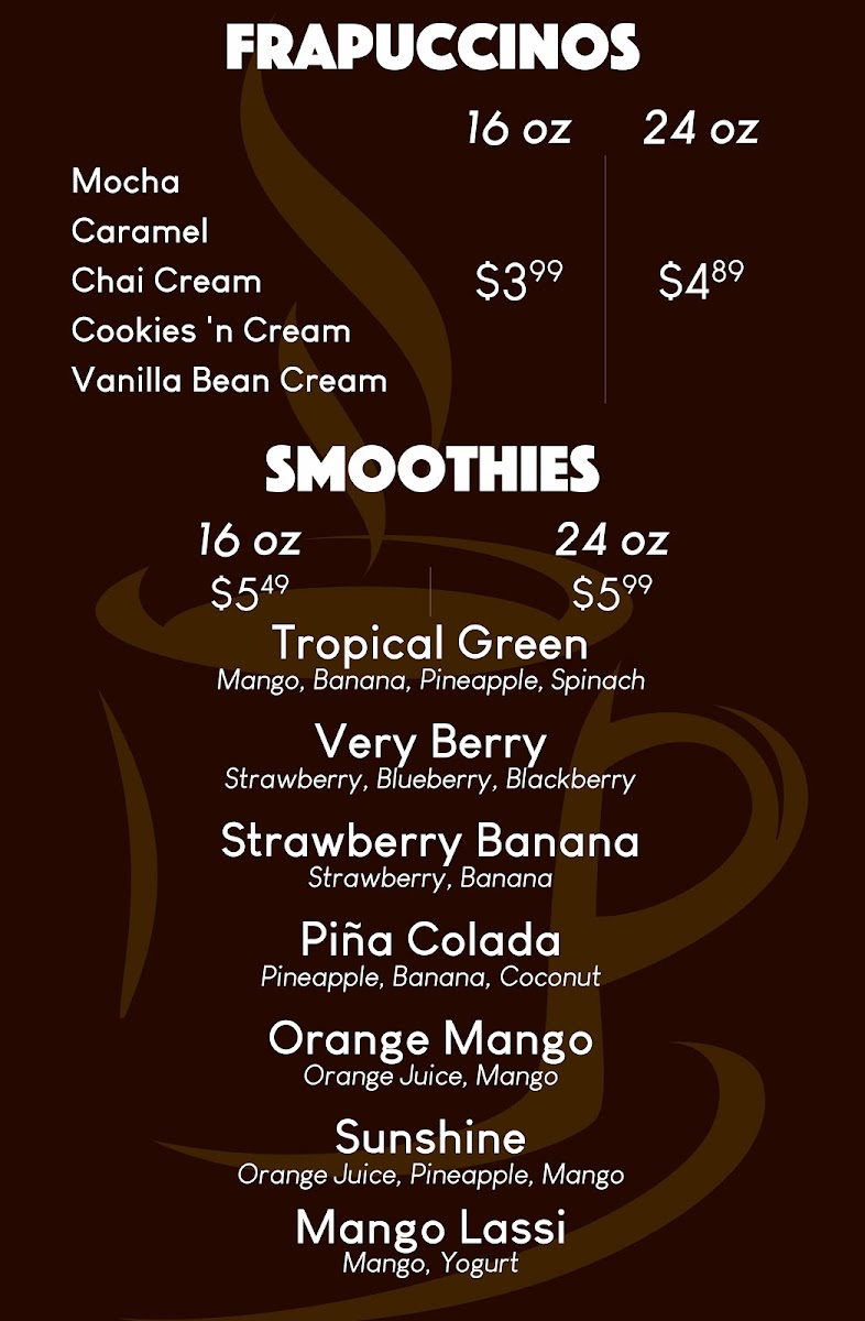 The Perfect Blend Cafe Menu